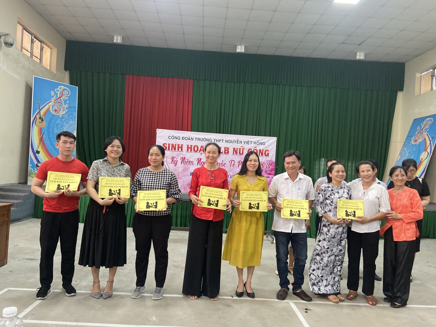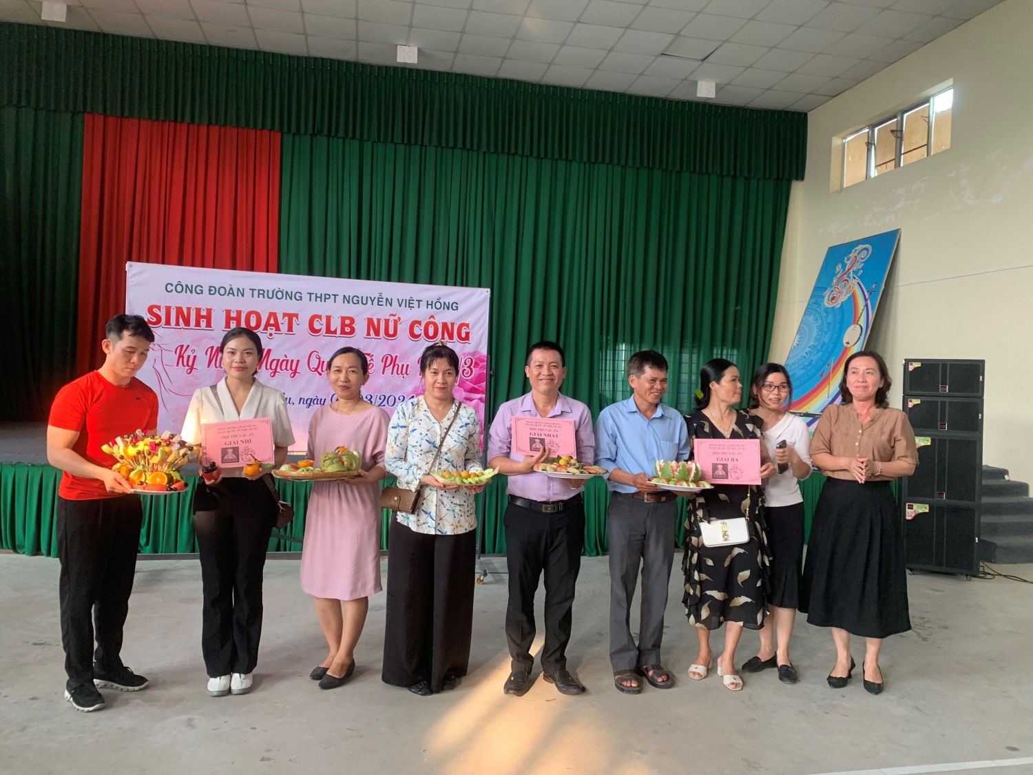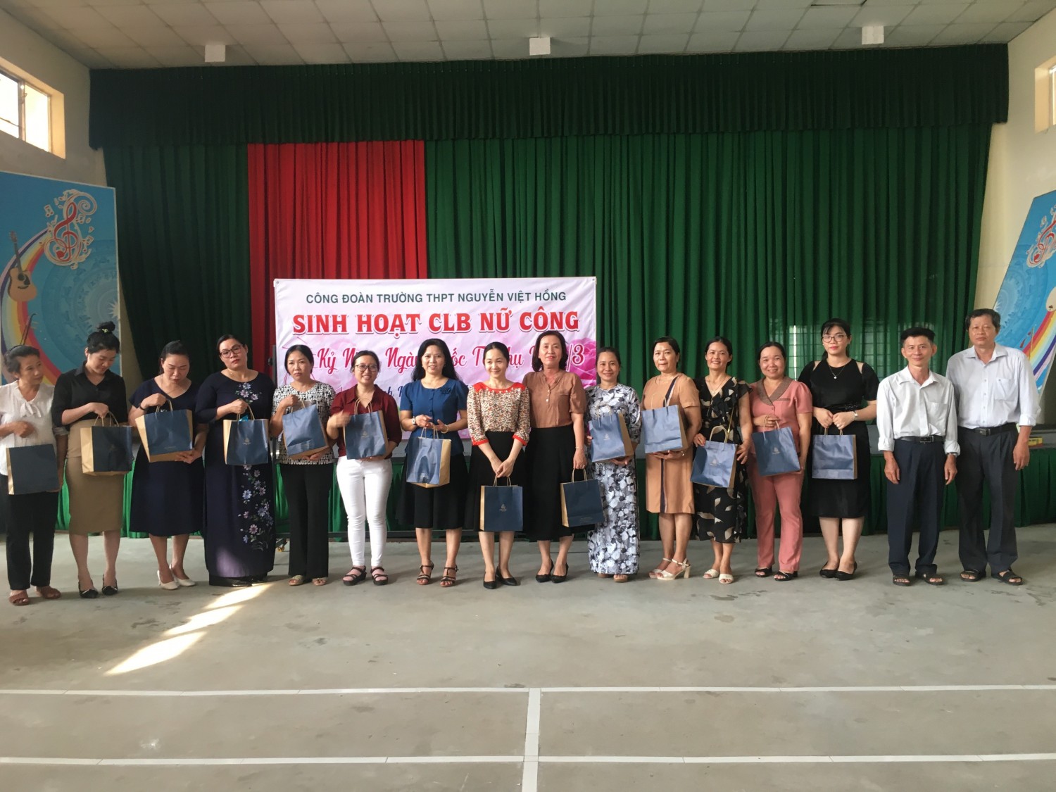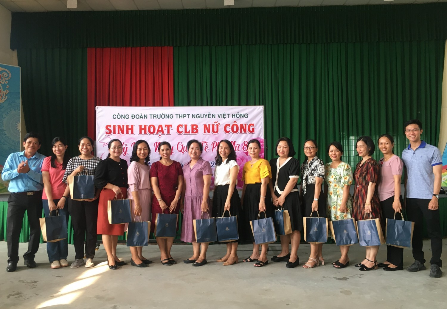 Trên đây là một số hoạt động ý nghĩa trong chuỗi hoạt động chào mừng ngày Quốc tế Phụ Nữ 8/03 và kỷ niệm 1984 năm cuộc khởi nghĩa Hai Bà Trưng và ngày Quốc tế hạnh phúc (20/3) của Công đoàn trường THPT Nguyễn Việt Hồng – hoạt động đã mang đến cảm giác hạnh phúc, được san sẻ, được yêu thương, được trân trọng cho toàn thể các nữ công đoàn viên của trường. MỘT SỐ ẢNH HOẠT ĐỘNG KỶ NIỆM NGÀY QUỐC TẾ PHỤ NỮ 08-3-2024Sinh hoạt truyền thống ngày 08/3 - Tặng quà cho nữ cán bộ, giáo viên, nhân viên trường