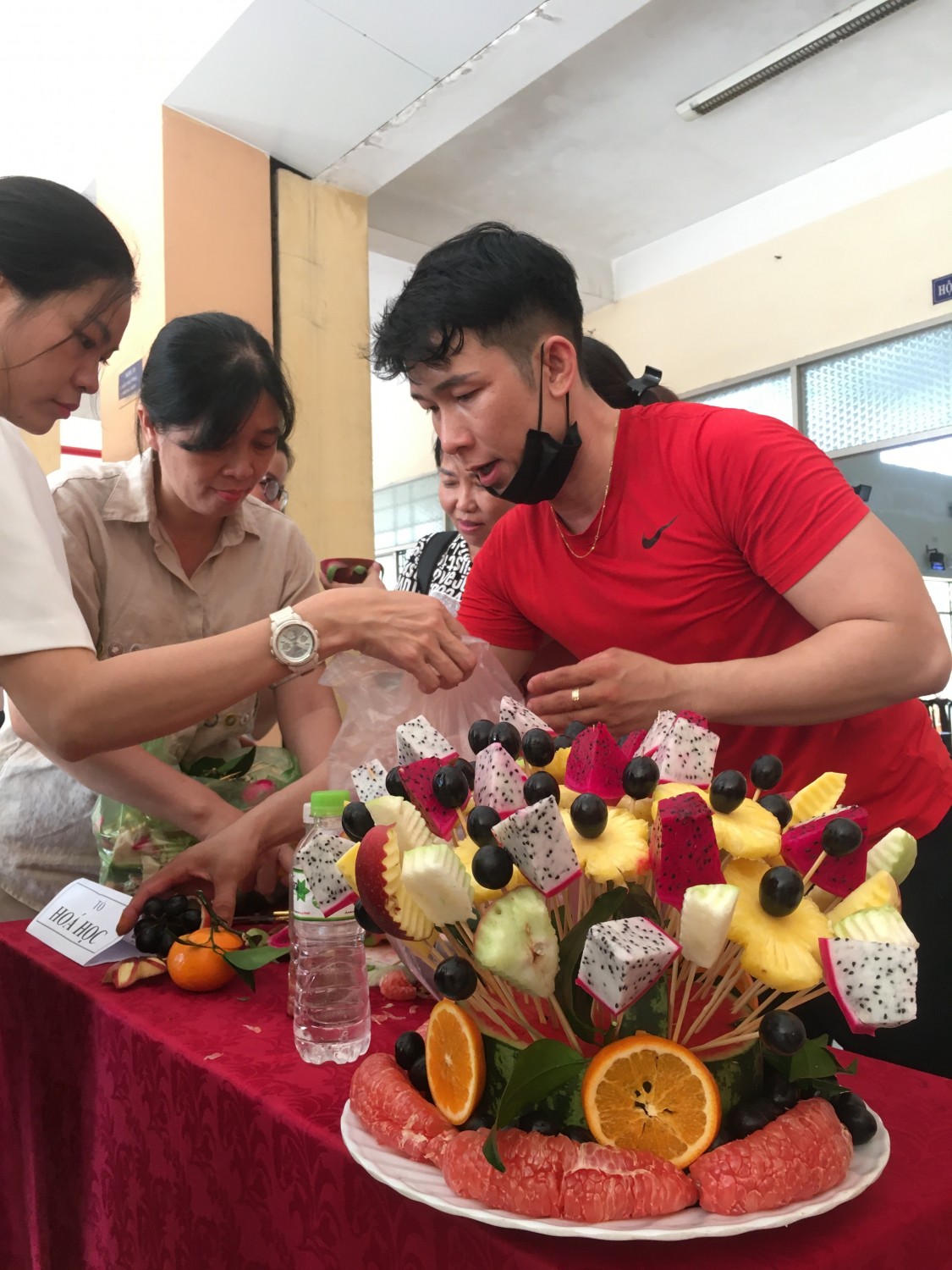 Các đội tham gia thi trang trí dĩa trái cây, bàn tiệc