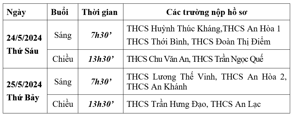 * Hồ sơ dự thi: (Do trường THCS nơi thí sinh học phụ trách.) - Thí sinh đăng ký trực tuyến trên phần mềm tuyển sinh của Sở GD&ĐT; - In phiếu thông tin đã đăng ký trực tuyến, ký tên xác nhận; - Nộp tại trường THCS mà thí sinh đang học: Phiếu thông tin, 01 tấm ảnh 3x4, bản photo các giấy xác nhận chế độ ưu tiên do cơ quan có thẩm quyền cấp (không cần chứng thực). * Lưu ý: Trường hợp thí sinh không có điều kiện đăng ký trực tuyến, thí sinh có thể nhận mẫu phiếu đăng ký tại trường THCS mà thí sinh đang học để điền thông tin đăng ký dự tuyển, trường THCS tiếp nhận phiếu và nhập thông tin vào phần mềm tuyển sinh của Sở GD&ĐT. 5. Tuyển thẳng, cách tính điểm chế độ ưu tiên Thực hiện theo Kế hoạch Tuyển sinh vào lớp 10 trung học phổ thông năm học 2024-2025 của Sở SGD&ĐT (Theo Quyết định số 40/QĐ-UBND ngày 09/01/2024 của Uỷ ban nhân dân thành phố Cần Thơ) II. THI TUYỂN
