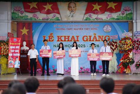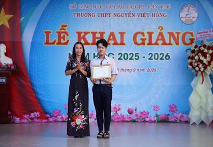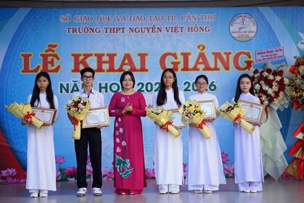 Bà Trần Hồng Thắm thay mặt Thành ủy đọc thư của Thành ủy, Hội Đồng nhân dân, Ủy ban nhân dân, Ủy ban Mặt trận Tổ quốc Việt Nam TP. Cần Thơ gửi Ngành giáo dục nhân dịp lễ khai giảng năm học. Ông Lâm Đúc Thành - Hiệu trưởng nhà trường đọc diễn văn khai mạc. Sau đó là phần khen thưởng và trao quà cho giáo viên chủ nhiệm và những học sinh có thành tích xuất sắc năm học 2024 - 2025.
